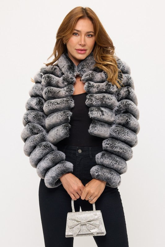Charcoal long Sleeve Chinchilla Cropped Jacket