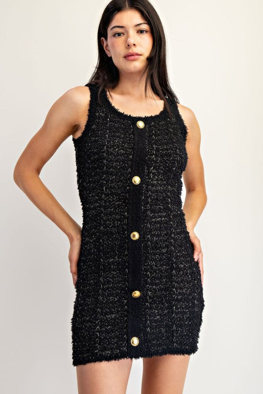 Black and Gold Knit Square Neck Dress