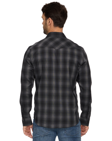 Black and Gray Plaid Button Down Long Sleeve Shirt