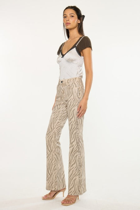 Cream Zebra Print High Rise Flare Jeans